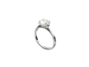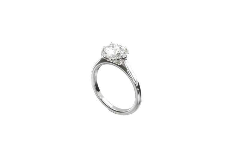 Un délicat halo entoure le diamant central, créant une couronne de lumière qui met en valeur chaque étincelle de la pierre.